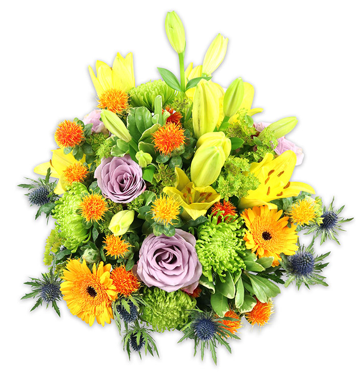 A gorgeous bouquet with a perfect mix of colors. The flowers stayed fresh and beautiful for days.